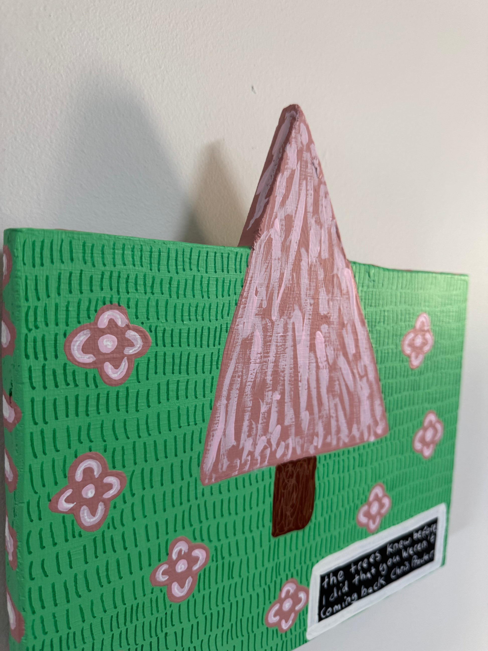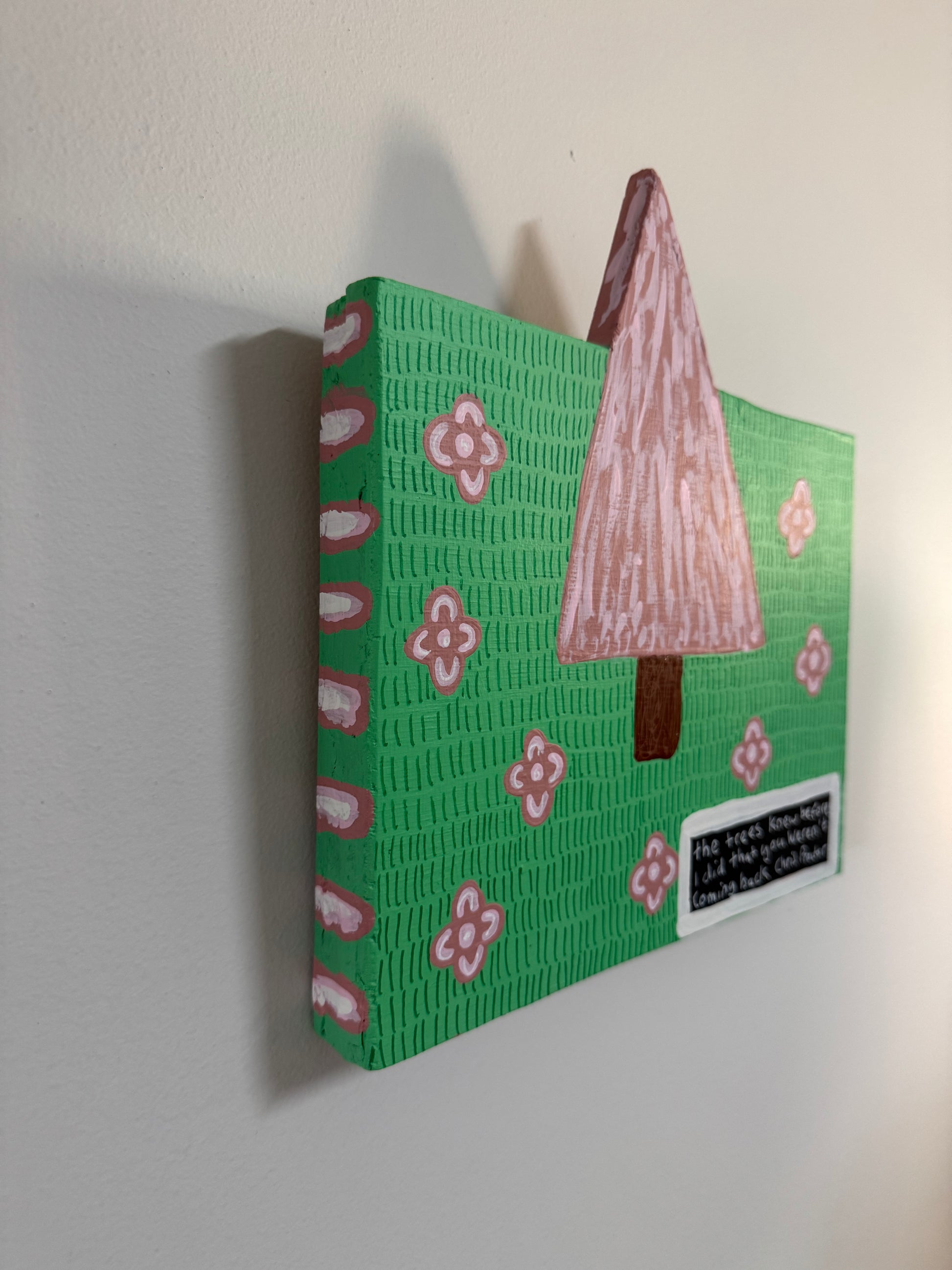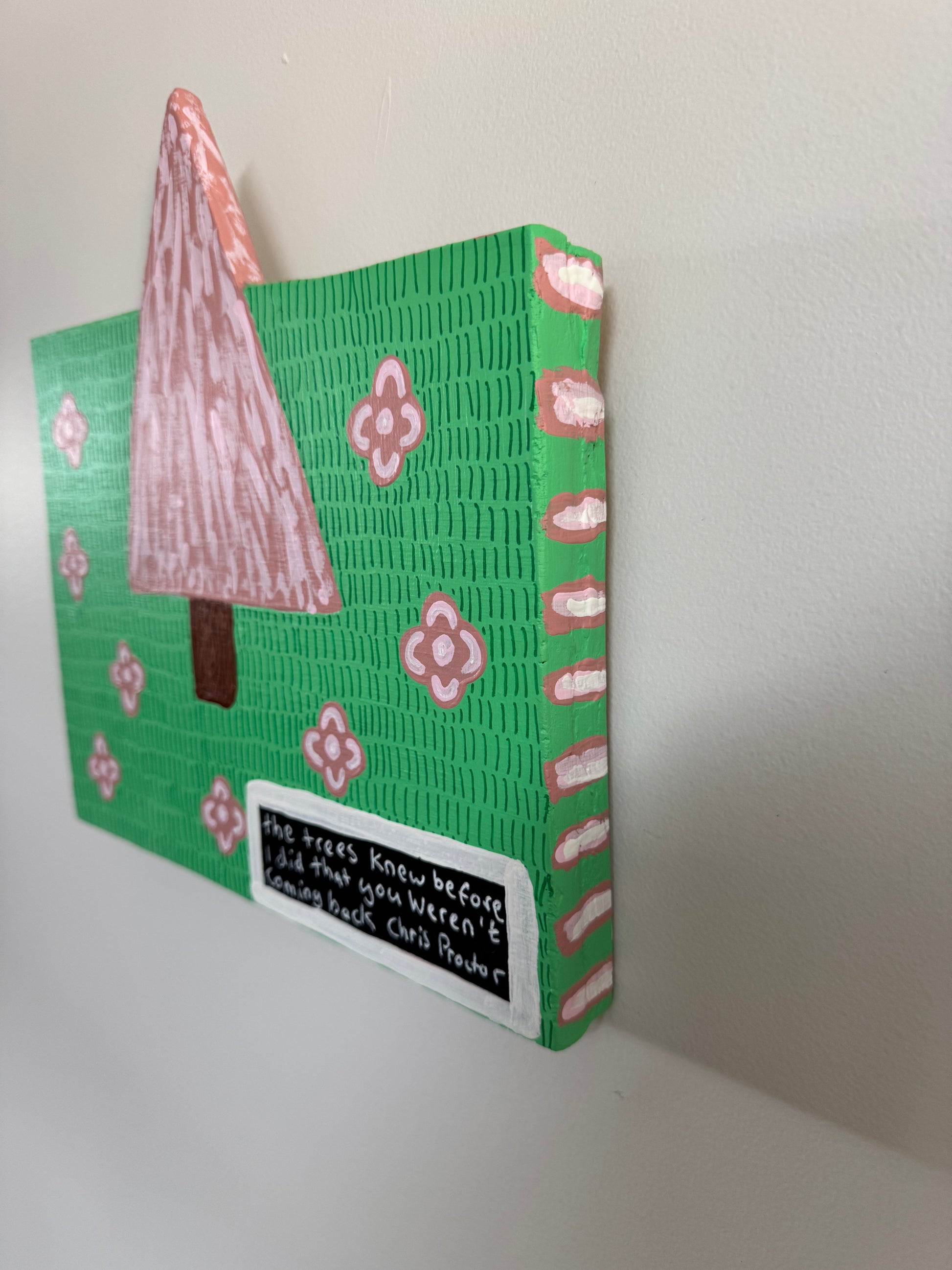 The Trees Knew Before I Did That You Weren’t Coming Back (2025) is an original painting using found wood and house paint.